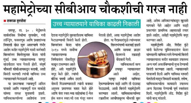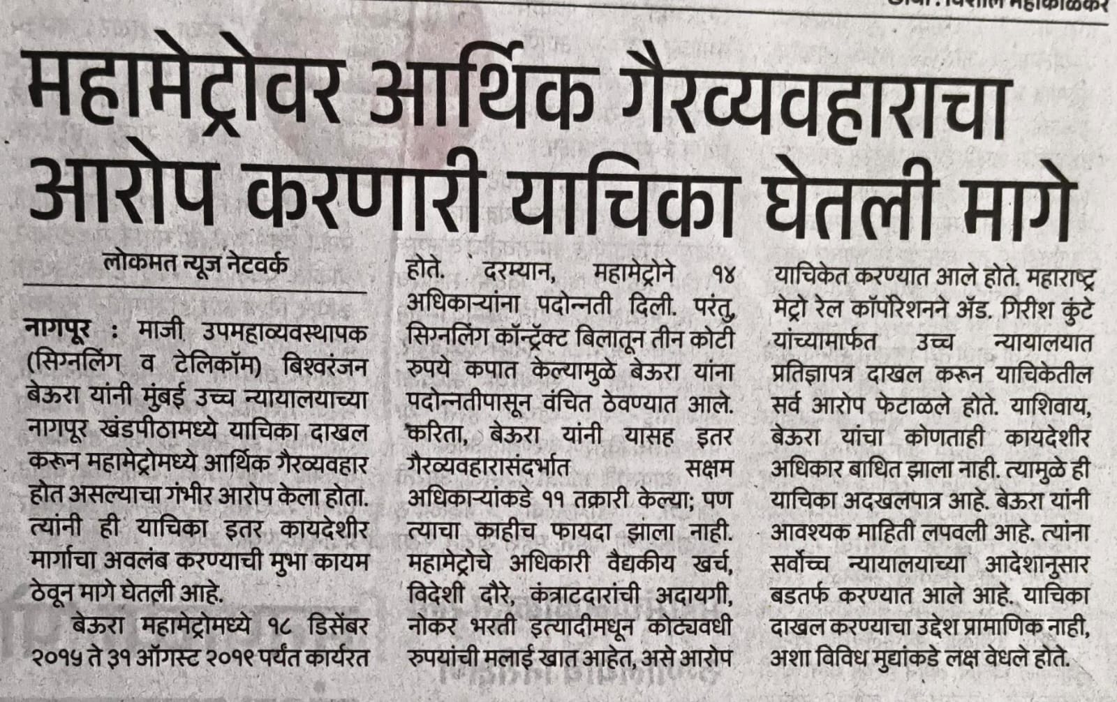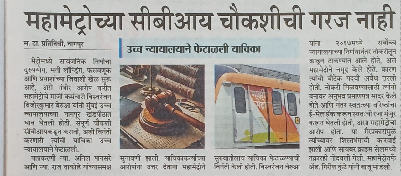 A seminar on "Nagpur Metro: A Perfect Transport System" was organized jointly by Mahametro Nagpur and JanAkrosh Swayamseva Sanstha.